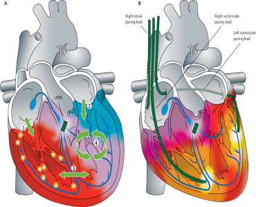 In addition to conventional pacemakers and ICDs, we use biventricular pacemakers or ICDs for a treatment known as cardiac resynchronization therapy (CRT).