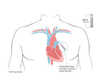 An implantable loop recorder is a very small heart rhythm monitoring device that stays in place under the skin of your chest for up to three years. An implantable loop recorder is a type of heart-monitoring device that records your heart rhythm continuously for up to three years.