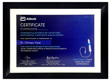 Abbott sjm certificate for first agilis hispro conduction system pacing lead implant in gujarat 20-08-2021